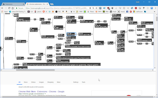 Capture d’écran de l’outil de développement “DOM node tree viewer 0.0.1” développé par untamed.co.uk, et disponible sur Google Chrome, 5 janvier 2018. Outil de développement "DOM node tree viewer 0.0.1" développé par untamed.co.uk, et disponible sur Google Chrome, 5 janvier 2018. de beaucoup d’outils de développement, se concentrent sur la structure interreliée des documents, n’utilisant que leur nom pour donner un aperçu du contenu.