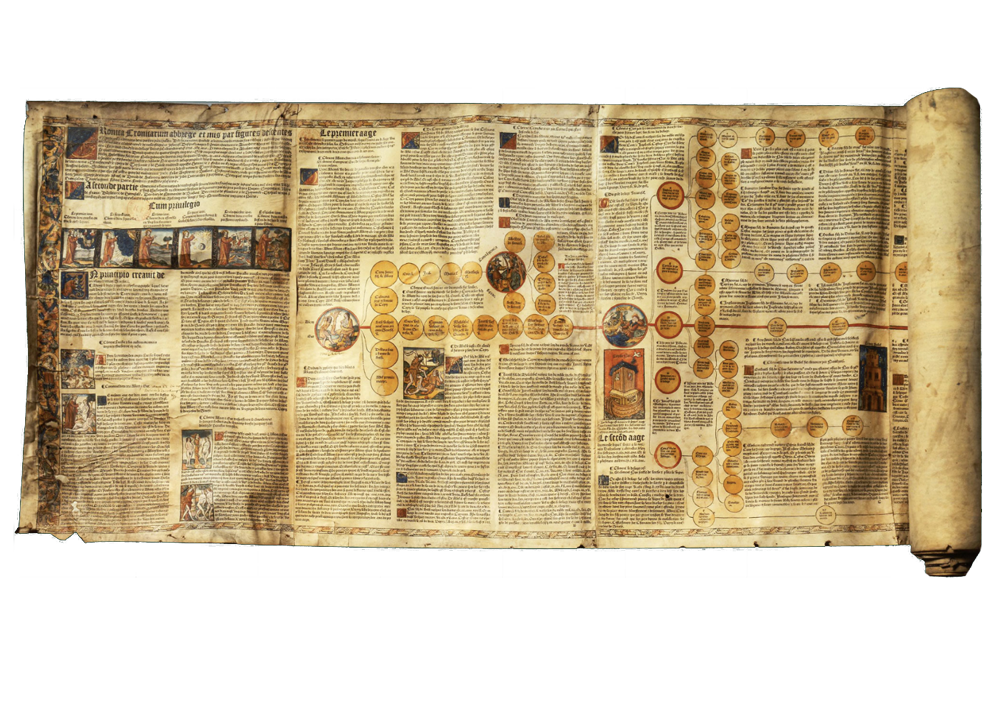Volumen Cronica cronicarum, Paris, François Regnault et Jacques Ferrebouc pour Jean I Petit, 1521 - Vélin 55 x 531 cm. François Regnault ; Jacques Ferrebouc ; Jean I Petit, Paris, 1521. BnF, Réserve des livres rares, Rés. Vélins-15 et 16 © Bibliothèque nationale de France
