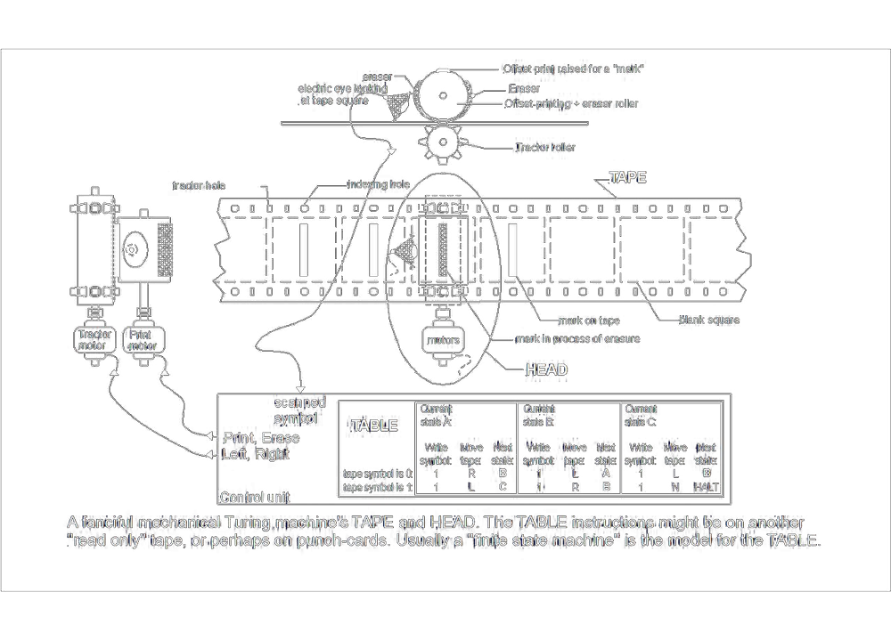 Représentation de la machine de Turing, illustration de wvbailey pour Wikipédia, 2006.