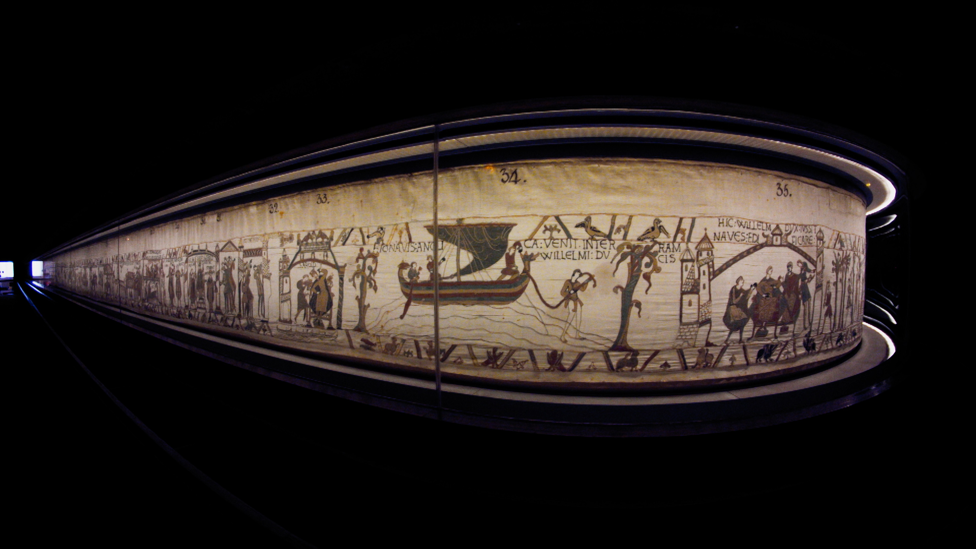 « Tapisserie de Bayeux », 1077, 70m. Épopée de Guillaume, duc de Normandie, devenu roi d’Angleterre en 1066, à l’issue de la bataille d’Hastings. Musée de Bayeux. que l’on doit longer pour observer l’histoire évoluer ; dans les