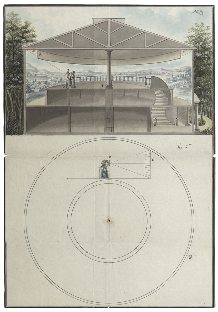 Construction circulaire qui se déploie horizontalement à 360° autour du spectateur