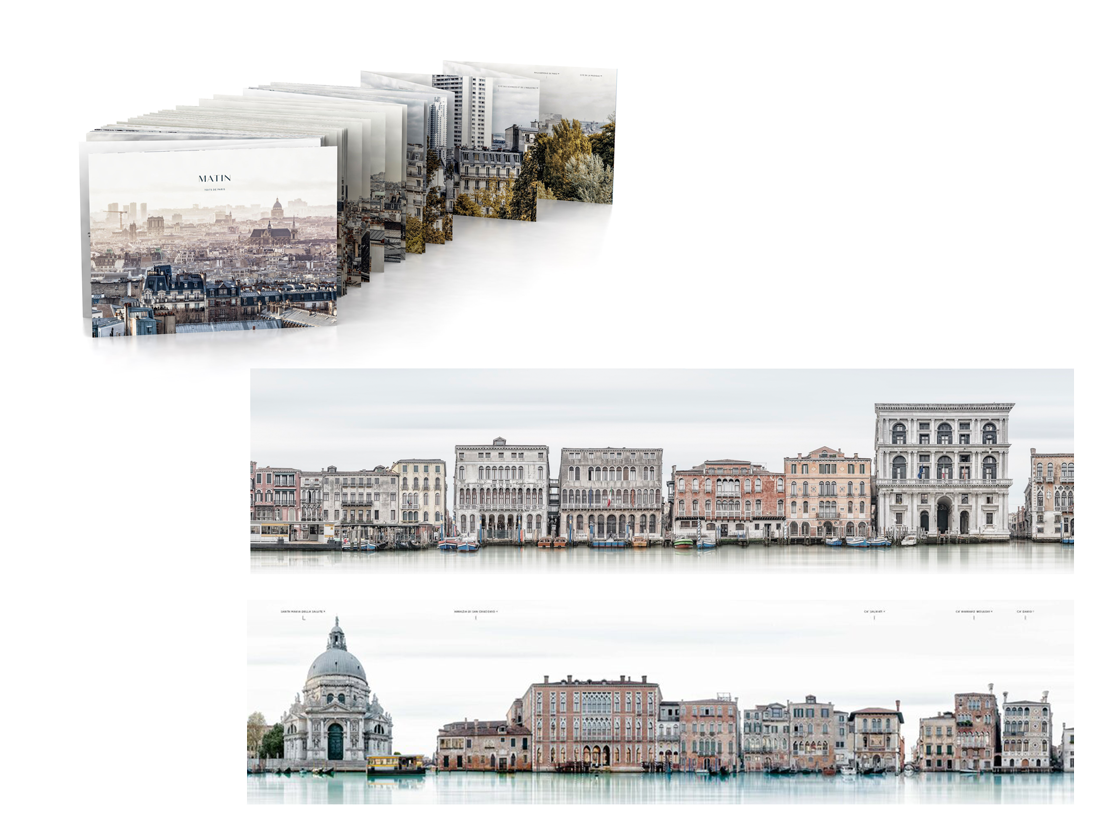 Leporello de Laurent Dequick « Grand Canal », 2019, et « Toits de Paris », 2021, Éditions du Chêne, 18m de long.