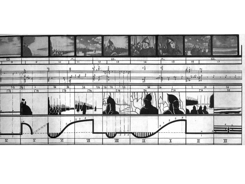 Sergei Eisenstein, « sequences diagrams for Alexander Nevsky and Battleship Potëmkin », Diagrammes des séquences pour les films « Alexander Nevsky et Battleship Potëmkin, »1925. Mais ce médium ne s’est pas longtemps écarté du panorama, puisqu’aujourd’hui, si la pellicule a presque disparu,