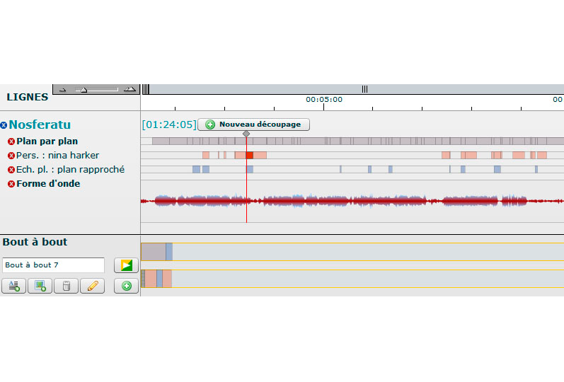 Le logiciel Lignes de temps met à profit les possibilités d’analyse et de synthèse offertes par le support numérique. Inspirées par les “timelines” ordinairement utilisées sur les bancs de montage numérique,